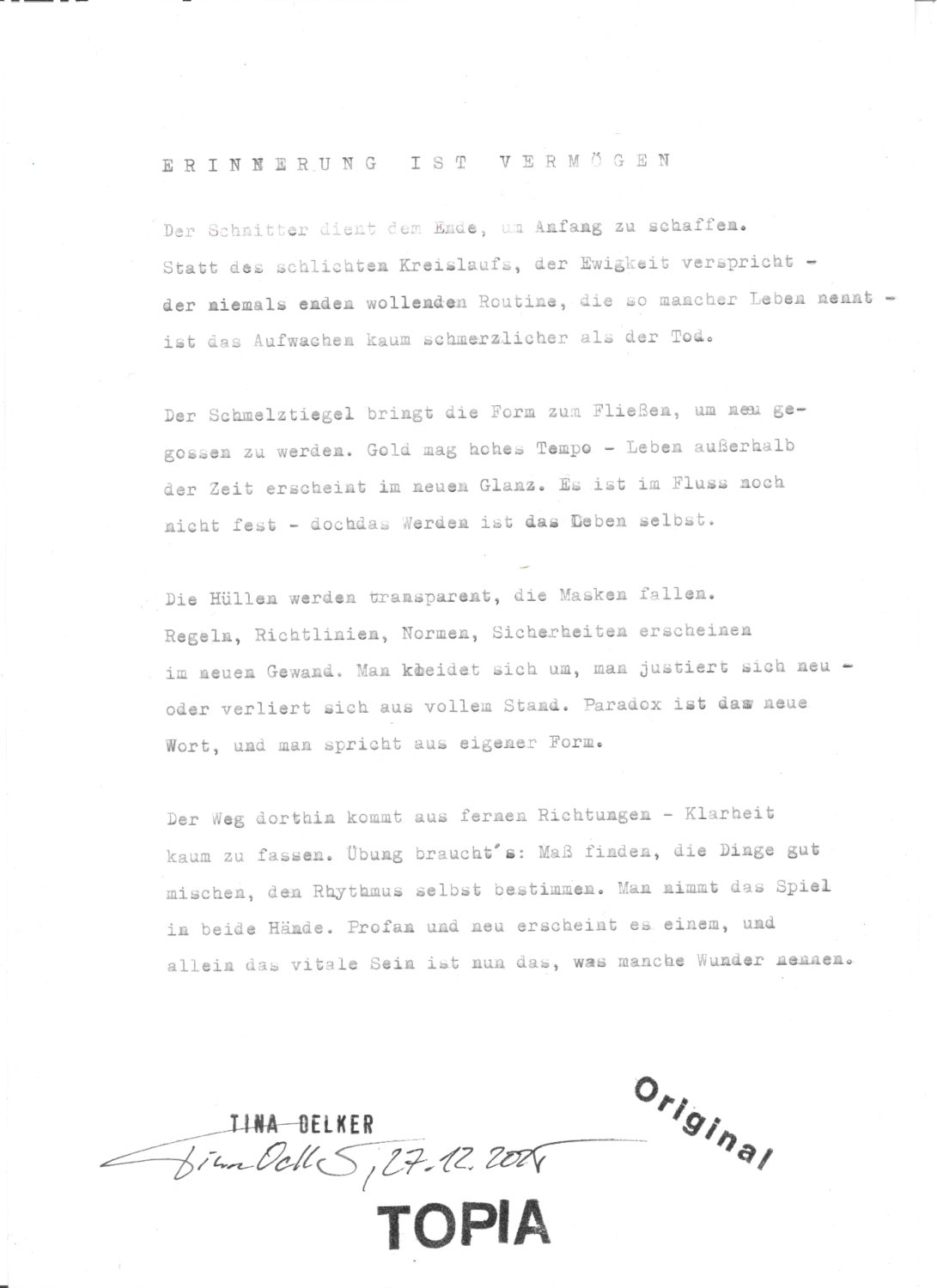 'ERINNERUNG IST VERMÖGEN'